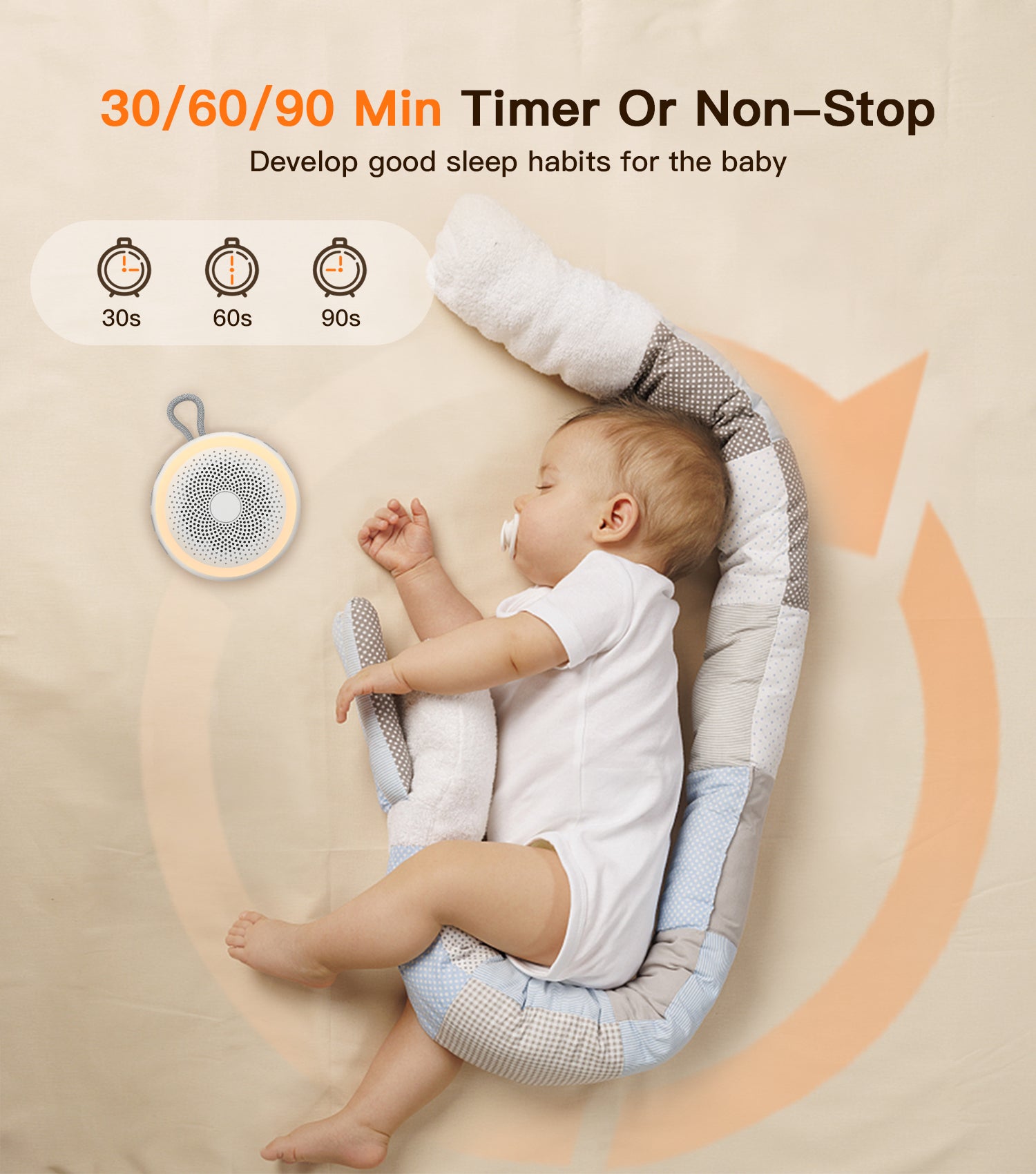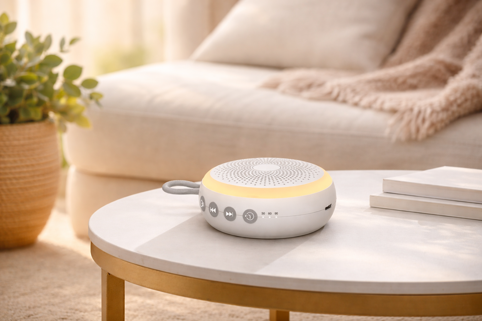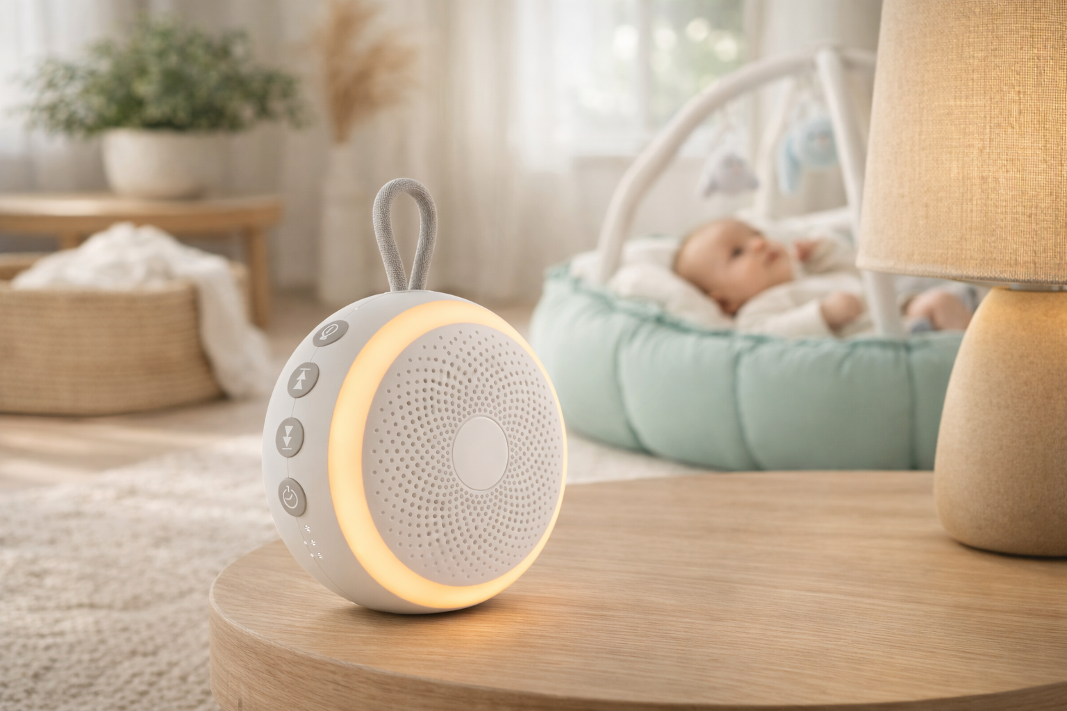 Onze white noise slaapmachines helpen je kleintje sneller ontspannen, thuis, onderweg en op vakantie.